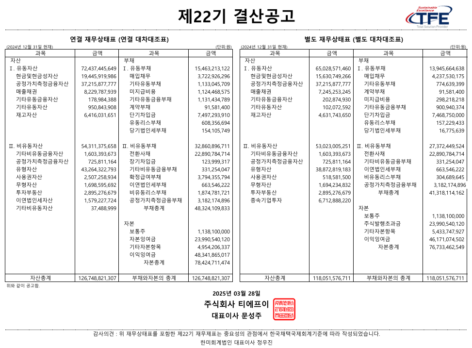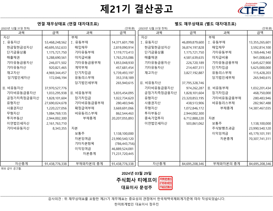 2024년 9월 30일(주)티에프이대표이사 문성주